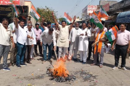 कांग्रेसजनों ने महंगाई के विरोध मे प्रदर्शन व प्रधानमंत्री का पुतला दहन…