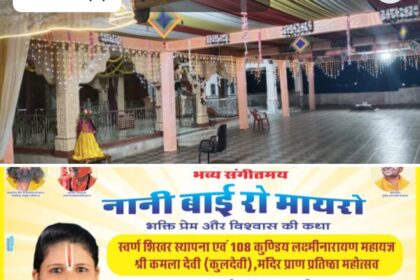 भव्य संगीतमय ‘श्री नानी बाई रो मायरो कथा’ का शुभारंभ 6 नवंबर से आसपुर में कुलदेवी माँ कमलादेवी मंदिर में स्वर्ण शिखर स्थापना व 108 कुण्डीय लक्ष्मी नारायण महायज्ञ के साथ प्राण प्रतिष्ठा महोत्सव 10 नवंबर तक जारी रहेगा