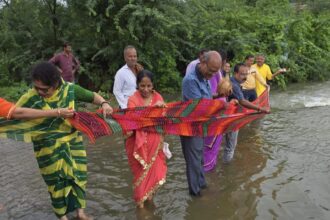 लायंस क्लब द्वारा खारीनदी की पूजा अर्चना कर चुनरी ओढाई।