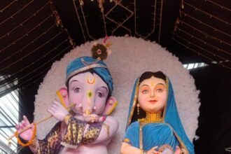 11 फीट के विशालकाय राधा कृष्ण के रूप में गणेश महोत्सव पटेल…