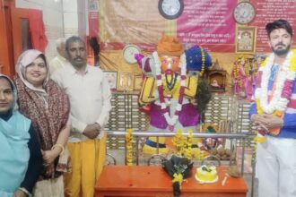 श्री संकट मोचन बालाजी मंदिर में भक्त तीर्थवानी का किया स्वागत।