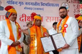 शाहपुरा के डॉ. तनय व्यास को प्राणी विज्ञान में पीएचडी की उपाधि गोविंद गुरु विश्वविद्यालय के दीक्षांत समारोह में राज्यपाल हरिभाऊ बागड़े ने किया सम्मानित ✍️ *मोनू सुरेश छीपा|द वॉयस ऑफ राजस्थान 9667171141*