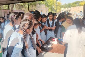 जीवन शैली परिवर्तन अभियान के अंतर्गत बालिकाओं का स्वास्थ्य परीक्षण किया गया बनेड़ा में चिकित्सा एवं आयुर्वेद विभाग की संयुक्त पहल, नशा मुक्ति की शपथ भी दिलाई गई