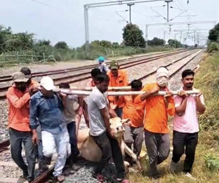ट्रेन की चपेट मे आने से एक गौवंश हुआ घायल, श्री माधव उपचार केन्द्र की टीम ने शीघ्र रेस्क्यू किया।