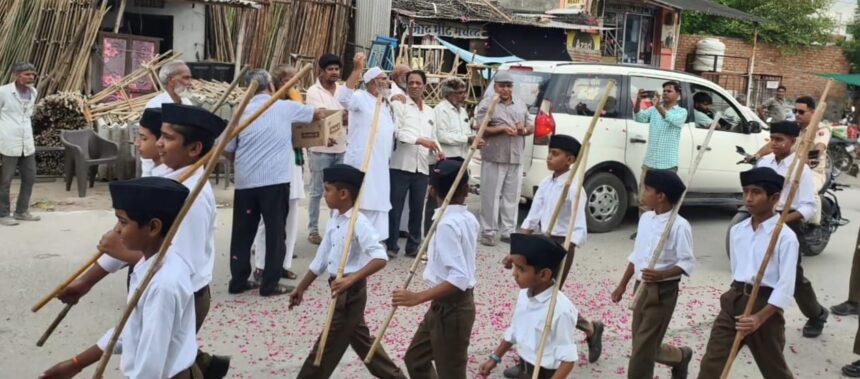 मुस्लिम समाज के लोगो ने राष्ट्रीय स्वंयसेवक संघ के पथ संचालन पर पुष्प वर्षा कर स्वागत किया।