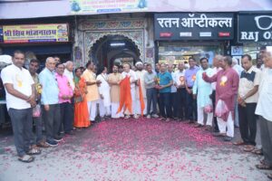 इससे पहले राजेंद्रमार्ग स्कूल ग्राउंड से बैंडबाजे के साथ शोभायात्रा रवाना हाेकर स्टेशन चाैराहा पहुंची, जहां