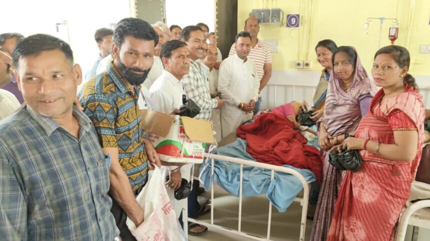 गुलाबपुरा (रामकिशन वैष्णव) स्थानीय भाजपाईयो ने पूर्व पालिका अध्यक्ष धनराज गुर्जर के नेतृत्व में भीलवाड़ा सांसद दामोदर अग्रवाल के जन्मदिवस पर अस्पताल में फल वितरण कर, सेवा कार्य कर मनाया। पूर्व नगरपालिका चेयरमैन धनराज गुर्जर के नेतृत्व मे भाजपा के विभिन्न संगठनों के पदाधिकारी अस्पताल पहुंचे जहां पर, सभी रोगियों को फल बिस्किट के किट, वितरण किए गए।