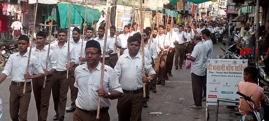 नगर में राष्ट्रीय स्वयंसेवक संघ ने भव्य पथ संचलन निकाला।जिसमें स्वयंसेवक पूर्ण गणवेश के साथ कंधे पर दण्ड रखकर कदम से कदम मिलाकर चल रहे थे। नगर में जगह-जगह फूलों की वर्षा कर पथ संचलन का स्वागत किया। भारत माता की जय, वंदे मातरम् के जय घोष के साथ पथ संचलन का भव्य स्वागत किया गया। संचलन माहेश्वरी सेवा संस्थान से प्रारंभ होकर सहाड़ा चौपाटी,मुख्य बाजार,मस्जिद चोक, हनुमान चौक, खटीक मोहल्ला, मालियांन मोहल्ला,रामद्वारा, कुंड चौक, ज्ञान जी का चौक, शिवराती दरवाजा, रेगर मोहल्ला,पंचतीर्थ, ईलाजी का चौक,कसारा बाजार, सहाड़ा चौपाटी,भूत बावजी,बस स्टैंड, शास्त्री नगर, लक्ष्मी बाजार से पुनः माहेश्वरी संस्थान पहुंचा। इस दौरान राष्ट्रीय स्वयंसेवक संघ जिला कार्यवाह सरवन लाल ने कहा कि संघ का कार्य समाज को संगठित करना है । हम सब भारत माता की संतान हैं। संघ को 100 वर्ष पूरे होने पर सरसंघचालक जी ने पांच बातों को हमारे जीवन में लागू करने का आह्वान किया है । जिसमें सामाजिक समरसता ,पर्यावरण संरक्षण ,कुटुंब प्रबोधन ,नागरिक शिष्टाचार का पालन करना ,स्व का अभिमान अर्थात स्वदेशी वस्तुओं को अपने जीवन में प्राथमिकता देना। पथ संचलन के दौरान पुलिस प्रशासन की व्यवस्था चाक चौबंद रही ।