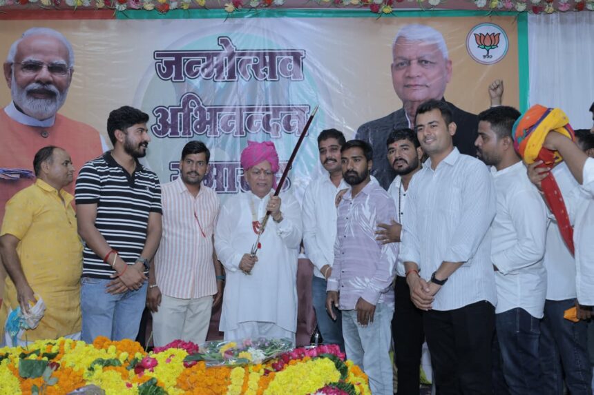 भीलवाड़ा। साँसद दामोदर अग्रवाल का जन्मोत्सव प्रातः 7 बजे देव दर्शन भगवान चारभुजा नाथ नोगाँवा के आशीर्वाद लेकर प्रारम्भ हुआ, इसके पश्चात परम् पूज्य माधव गो शाला में गऊ माता को लापसी प्रसाद खिलाकर गो माता का आशीर्वाद प्राप्त किया। इसके बाद बिलिया में विमल जैन व राष्ट्रीय राजपूत करणी सेना के योगेंद्र सिंह कटार के नेतृत्व में भव्य स्वागत किया गया। इसके बाद प्रातः 8:30 बजे पुलिस लाइन के पास नगर विकास न्यास द्वारा मेवाड़ मिल से पांडु नाले तक 100 फिट रोड व नाला निर्माण, विधुत लाइन शिफ्टिंग व विभिन्न विकास कार्य का लगभग 467.55 लाख रूपये का शिलान्यास कार्यक्रम हुआ। कार्यक्रम में भीलवाड़ा कलेक्टर, जिला पुलिस अधीक्षक व विधायक अशोक कोठारी, महापोर राकेश पाठक, न्यास सेकेट्री, विधुत विभाग के अभियंता सहित सभी कर्मचारी उपस्थित थे। उसके बाद सत्यम कॉम्प्लेक्स के पास डॉ सर्वपल्ली राधाकृष्णन जी की मूर्ति पर माल्यार्पण हुआ ततपश्चात प्रातः 9:30 बजे प्रधानमंत्री नरेंद्र मोदी के आह्वान पर एक पेड़ मां के नाम कार्यक्रम पीस पार्क महिला आश्रम कॉलेज के पास पथिक नगर पर सम्पन हुआ। महात्मा गाँधी अस्पताल में पांच बच्चों को कृत्रिम पैर लगवाएं। साँसद प्रवक्ता विनोद झुरानी ने बताया कि प्रातः 10 बजे से साँसद अग्रवाल का जन्मोत्सव अभिनंदन समारोह स्थानीय अग्रवाल उत्सव भवन, रोडवेज़ बस स्टैण्ड के सामने आरम्भ हुआ, जिसमें भीलवाड़ा जिले के समस्त जनप्रतिनिधियों भाजपा नेताओं, भाजपा के समस्त जिला व मंडल, आठो विधानसभा से, मोर्चो प्रकोष्ठों के कार्यकर्ताओं विभिन्न समाजों के पदाधिकारियों, लोकसभा क्षेत्र केआमजन, विभिन्न सामाजिक संस्थाओं से जुड़े कार्यकर्ताओ ने भव्य स्वागत अभिनंदन किया।कार्यक्रम के दौरान साँसद अग्रवाल ने साँसद खेल महोत्सव की वेबसाइट व क्यूआर कोड के बारे में भी आवश्यक जानकारी साझा की। सांसद दामोदर अग्रवाल ने सभी का आभार जताते हुए कहा कि यह दिन उनके लिए जनसेवा की नई ऊर्जा और संकल्प का अवसर है। उन्होंने कहा कि जनता और कार्यकर्ता का प्यार और विश्वास ही उनकी सबसे बड़ी शक्ति है और आने वाले समय में वे क्षेत्र के चहुमुखी विकास के लिए और अधिक समर्पण के साथ कार्य करेंगे। जन्मदिन के अवसर पर हजारों की संख्या में कार्यकर्ताओ का ताँता लगा रहा।