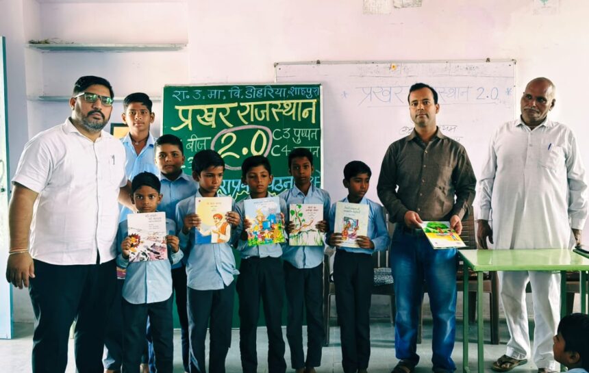 पीईईओ डोहरिया प्रखर राजस्थान 2.0 प्रभारी हिन्दी शिक्षक दिनेश सिंह भाटी ने बताया कि इस वर्ष 5 सितंबर 2025 शिक्षक दिवस से उक्त मुख्यमंत्री शिक्षित राजस्थान अभियान के प्रखर राजस्थान 2.0 कार्यक्रम का माननीय मुख्यमन्त्री श्री भजन लाल शर्मा व शिक्षामन्त्री माननीय मदन लाल दिलावर के करकमलों से भव्य शुभारम्भ होकर यह कार्यक्रम सूचना प्रौद्योगिकी की एआई तकनीक को उपयोग में लेते हुए प्रारंभ हुआ है जो 5 दिसंबर 2025 तक 12 सप्ताहों की विस्तृत कार्ययोजना के अंतर्गत कक्षा 3,4,5 का प्रथम समूह तथा कक्षा 6,7,8 का द्वितीय समूह में C1 बीज, C2 अंकुरण, C3 पुष्पन, C4 फलन के नामकरण से स्तरानुसार छात्रों को वर्गीकृत कर हिन्दी भाषा की बाल साहित्य पुस्तकें, बाल गीत,एबीएल किट,पाठ्यपुस्तकें,कार्य पुस्तिकाएँ, वर्क बुक्स, टीएलएम, स्वनिर्मित पत्रकों का उपयोग कर मौखिक धाराप्रवाह पठन ( ओ आर एफ – ओरल रीडिंग फ्लुएंसी ) की गुणवत्ता बढ़ाई जाएगी प्रखर राजस्थान 1.0 2024 के अभूतपूर्वअनुभवों के आधार पर अधीनस्थ विद्यालयों राउप्रा विद्यालय काशीपुरा,सरदारपुरा, बालिका विद्यालय डोहरिया, रा.प्रा.वि. शिव कॉलोनी,भैरुखेड़ा व महात्मा गाँधी राजकीय विद्यालय, उम्मेदपुरा के सभी हिन्दी शिक्षकों तथा प्रधानाध्यापकों के अनुभवों के आधार पर वर्तमान में इस अतिमहत्वपूर्ण कार्यक्रम को संपूर्ण समन्वय के साथ शुरू किया गया है कार्यक्रम की श्रृंखला में कक्षा 7 के छात्र प्रियांशु सेन ने सांकेतिक मौखिक पठन के रूप में सरस्वती ईशवन्दन का सस्वर वाचन किया उपलब्ध संसाधनों के अधिकतम उपयोग के अंतर्गत श्री प्रधानाचार्य श्री अमित सोनी द्वारा कक्षा तीन से आठ के विद्यार्थियों को मौखिक पठन हेतु पुस्तकालय की बाल साहित्य-गीत-कविता- कहानियों की पुस्तकें वितरित की गई प्रथम सप्ताह शुरुआत-कार्ययोजना व समीक्षा कार्यक्रम में भैरूलाल जाट,कैलाश चौधरी, दिनेश सिंह भाटी, पवन कुमार शर्मा,होशियार रेगर, मिश्रीलाल कुमावत आदि शिक्षकों का सक्रिय सहयोग रहा