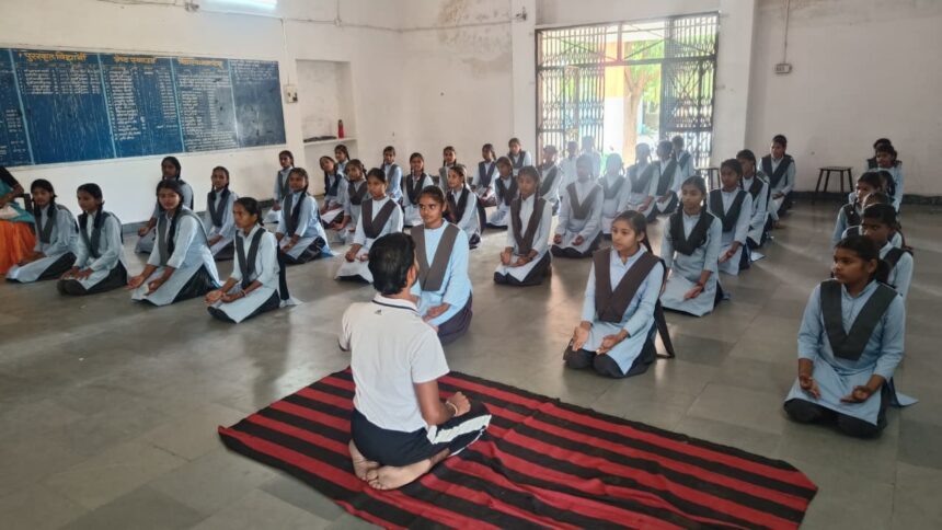 योग प्रशिक्षक कुलदीप सिंह राठौड़ ने बालिकाओं को योग अभ्यास करवाया।