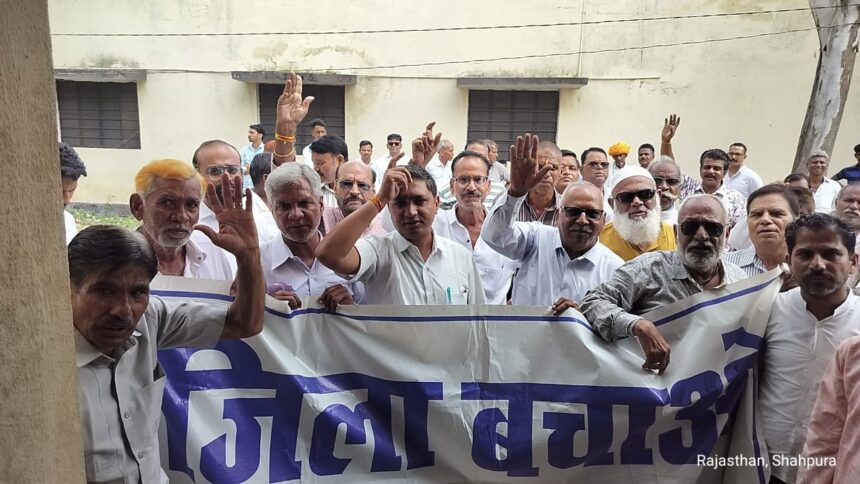 अभिभाषक संस्था शाहपुरा के तत्वाधान में जिला बचाओ संघर्ष समिति शाहपुरा द्वारा शाहपुरा को वापस जिले का दर्जा दिलाने की मांग को लेकर 28 को रविवार का अवकाश होने के कारण आज 29 सितंबर 2025 सोमवार को प्रातः 11:00 बजे जिला बचाओ संघर्ष समिति अध्यक्ष दुर्गा लाल राजोरा सयोंजक रामप्रसाद जाट के नेतृत्व में बालाजी की छतरी से सदर बाजार होकर उपखंड कार्यलय तक विशाल पैदल मार्च निकाल कर मुख्यमंत्री राजस्थान सरकार को चौथा समरण पत्र दिया और शाहपुरा को जिला बनाने का किया वादा याद दिलाया । विदित रहे पूर्व में संघर्ष समिति और मुख्यमंत्री की जयपुर में शाहपुरा विधायक की मौजूदगी में वार्ता हुई और शाहपुरा को वापस जिला बनाने का सकारात्मक आश्वासन मिला था । अभिभाषक संस्था सह सचिव एवं