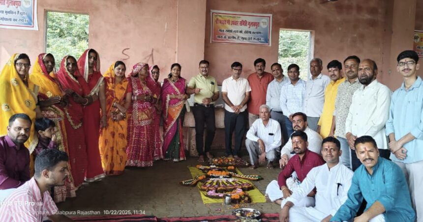 गुलाबपुरा (रामकिशन वैष्णव) स्थानीय श्री माधव गौ उपचार केंद्र पर गोवर्धन पूजन का कार्यक्रम आयोजित किया गया, पंडित मुकेश कुमार शर्मा ने विधि विधान से पूजा करवाई। गोवर्धन भगवान का सूखे मेवों (ड्राई फ्रूट )से श्रृंगार समाज सेविका मोहनी देवी प्रजापत की ओर से करवाया गया। आशुतोष सोनी एवम् दीपक जैन ने उपचार केंद्र में गौ सेवा कर जन्मदिन मनाया एवं गौ पूजन किया गया। इस दौरान किशोर राजपाल, सम्पत व्यास, संपत सुराणा, बालू लाल काल्या, नरेंद्र केलानी, गोविंद राम लोहार, कमल शर्मा , कन्हैया लाल सोनी, निशांत मेहर, हरीश शर्मा, सूरजकरण लड्ढा, पंकज जांगिड, सत्यनारायण प्रजापत, नवनीत जांगिड, सुरेन्द्र जांगिड, अंकित गर्ग, सुमित दाधीच, मुकुल त्रिवेदी, शुभम टेलर, भैरू लाल सोनी, मोहनी प्रजापत, कमला जांगिड, रेखा जांगिड, सुनीता व्यास, मीनाक्षी टेलर, दिशा प्रजापत, मीनाक्षी दाधीच, लाड देवी, शशि सोनी, मातृ शक्ति सहित गौ सेवक मौजूद थे।