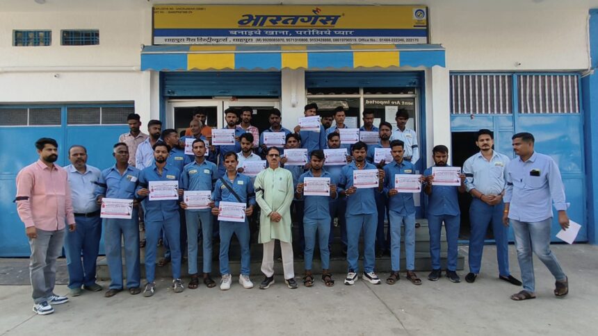 शाहपुरा क्षेत्र के एलपीजी वितरकों की काली पट्टी बांधकर विरोध प्रदर्शन किया कमीशन बढ़ोतरी को लेकर :