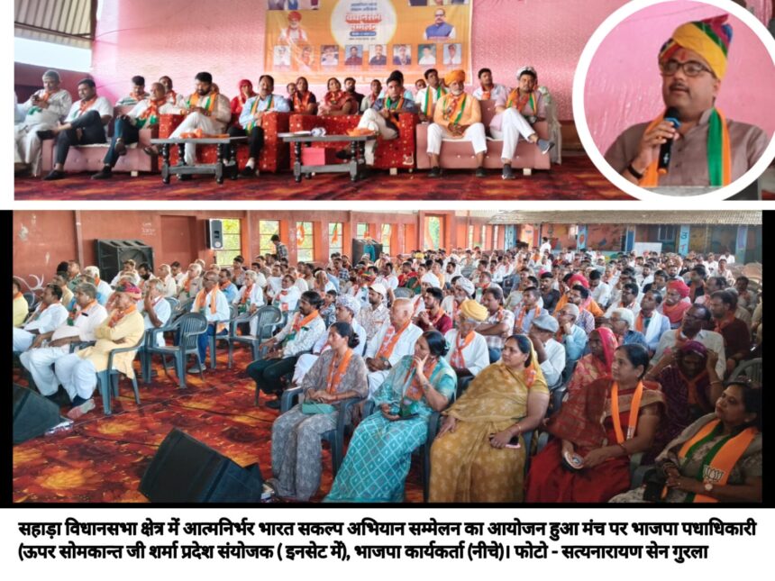 गुरलां। सहाड़ा विधानसभा क्षेत्र के भारतीय जनता पार्टी द्वारा आयोजित कार्यक्रम आत्मनिर्भर भारत संकल्प अभियान में कार्यकर्ताओं से स्वदेशी वस्तुओं को अपने का आह्वान किया। विनायक विधापिठ स्कूल भुणास सभागार में भारतीय जनता पार्टी द्वारा सहाड़ा रायपुर हमीरगढ़ विधानसभा स्तरीय कार्यक्रम का आयोजन किया गया। जिसमें सभी कार्यकर्ताओं से पार्टी गाइडलाइन की अनुसार वर्ष 2047 तक भारत को विकसित राष्ट्र बनाने की श्रेणी में स्वदेशी वस्तुओं को अपनाने का आह्वान किया। भाजपा नेता सोमकान्त जी शर्मा प्रदेश संयोजक विशेष सम्पर्क प्रकोष्ठ एवं भा.ज.पा. भरतपुर संभाग सह प्रभारी (मुख्य वक्ता) ने कहा कि मोदी जी के नेतृत्व में देश विकास की ऊंचाइयों की ओर बढ़ रहा है। आज संसार में किसी भी मामले को लेकर भारत की चर्चा होना आवश्यक बन चुका है।