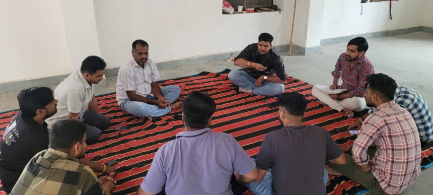 गुलाबपुरा (रामकिशन वैष्णव) आगामी दो नवम्बर को रक्तदान शिविर को लेकर रविवार को रीजनल प्रेस क्लब भवन मे बजरंग दल विभाग सहसंयोजक आशीष दाधीच के सानिध्य मे सम्पन हुई बैठक।