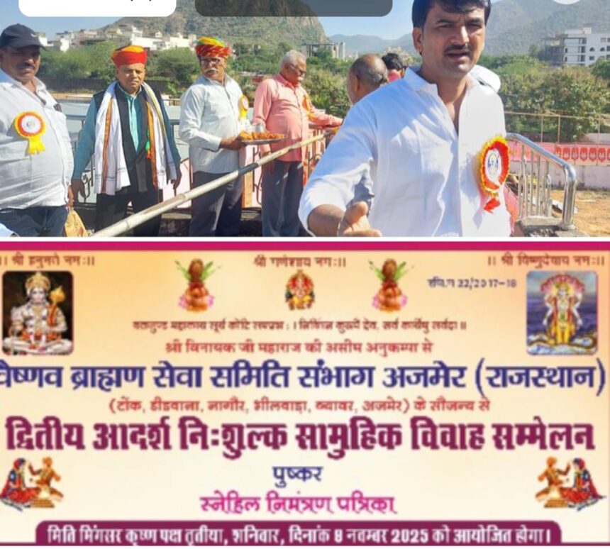 🕊️ वैष्णव ब्राह्मण समाज का द्वितीय आदर्श निशुल्क सामूहिक विवाह सम्मेलन आज — 17 जोड़े बंधेंगे परिणय सूत्र में