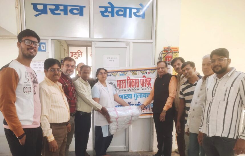 गुलाबपुरा(रामकिशन वैष्णव) भारत विकास परिषद द्वारा स्थानीय रेफरल चिकित्सालय के मातृ शिशु कल्याण केंद्र में नवजात शिशुओं हेतु शिशु किट प्रदान किए गए। प्रत्येक पूर्णिमा और अमावस्या को परिषद द्वारा फल और शिशु किट वितरण किया जाता है। राजकीय सप्लाई कम होने की जानकारी मिलने पर परिषद परिवार के भामाशाह सदस्य उम्मेद सिंह बाबेल द्वारा 100 किट गणपति मार्बल विजयनगर के नाम से चिकित्सालय में अध्यक्ष संपत व्यास के सानिध्य में डॉ जी एल जैन की उपस्थिति में स्टाफ की सिस्टर ऐजन को वितरण हेतु प्रदान किए गए।