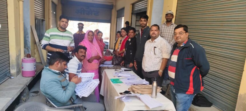 गुलाबपुरा (रामकिशन वैष्णव) शहरीय क्षेत्र के तीन बूथों, भाग संख्या 253,254,257 (वार्ड23,24,25,26) के मतदाताओं की सुविधा के लिए भाजपा के पूर्व मंडल अध्यक्ष हरीश शर्मा के नेतृत्व में विशेष कैंप का आयोजन गणेश मार्केट,भीलवाड़ा रोड़ पर किया गया, जिसमे 372 फार्म भरवाये गए। कैंप में 3 बूथों के बीएलओ व उनके सहयोगी स्टाफ,आशा सहयोगिनी ने एक ही स्थान पर सभी मतदाताओं के परिवार,पड़ोसियों या जिनका भी फॉर्म अभी तक नहीं भरा गया उनके फॉर्म भरवाये गए। इस शिविर में 254 बीएलओ नारायण माली,257 बीएलओ मूलचन्द कुमावत,253 बीएलओ अजय सिंह, प्रह्लाद सिंह व आशा सहयोगिनी मंजू आमेटा,चंद्रकांता सेन द्वारा कुल 372 फॉर्म भर कर ऑनलाइन अपलोड करवाये गये। इस दौरान पार्षद गोपुमल मैठाणी, शिवसिंह राठौड़,कैलाश व्यास,महावीर टेलर,गौतम आंचलिया,मनोज सेठी,नवल कुमार, राजू वर्मा,अशोक कुड़ी, गणेश वर्मा,रिंकु टेलर,कैलाश बैरवा सहित मौजूद थे।