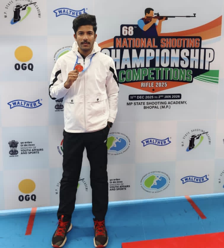 68 वीं नेशनल शूटिंग चैंपियनशिप में बिजयनगर के राजनगर निवासी पूर्व नेता प्रतिपक्ष मूल सिंह राठौर के पौत्र भुवनेश्वर राज सिंह राठोड़ पुत्र हेमेन्द्र सिंह राठौड़ ने राजस्थान का नेतृत्व करते हुए पुरुष वर्ग के 50 मीटर थ्री पोजिशन सीनियर सिविलियन टीम केटेगरी में स्वर्ण पदक प्राप्त कर शहर को गौरवान्वित करने पर अभिन्नदन किया गया । भुवनेश्वर राज सिंह ने बताया कि 11 दिसंबर से 2 जनवरी2026 तक आयोजित हो रही इस प्रतियोगिता के इस वर्ग में राजस्थान को स्वर्ण पदक प्राप्त हुआ है। पूर्व पार्षद राजेंद्र शर्मा, पार्षद मोहम्मद दाऊद कुरैशी, पूर्व पार्षद भगवान सिंह,नगर कांग्रेस अध्यक्ष दौलतराम मानक चंदानी,नगर विकास समिति अध्यक्ष श्याम नागौरी, महामंत्री चतर सिंह पीपाडा सहित क्षेत्रवासियो ने इस उपलब्धि पर खुशी प्रकट कर बधाई दी।