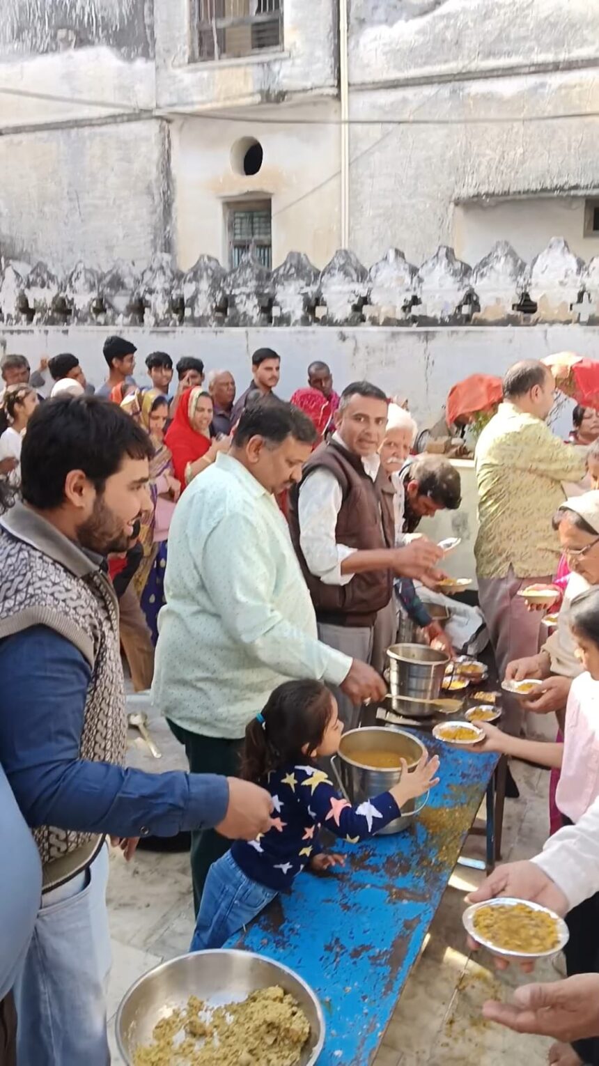 दोपहर 12:15 बजे विधिवत महाआरती संपन्न हुई, जिसके पश्चात ठाकुर जी को अर्पित दाल-ढोकले के प्रसाद का श्रद्धालुओं में वितरण किया गया।