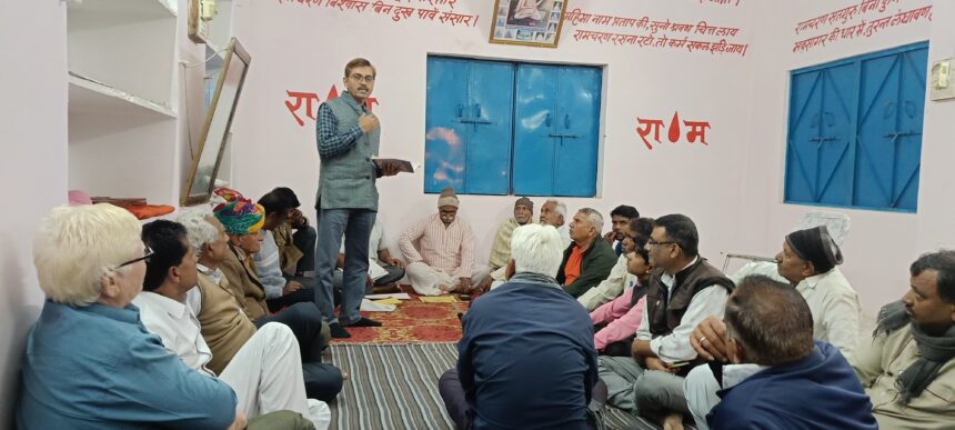 जिले के बनेड़ा कस्बे में आगामी 28 दिसंबर से 31 दिसंबर 2025 तक भव्य ’24 कुंडीय गायत्री महायज्ञ’ का आयोजन होने जा रहा है। इस विशाल धार्मिक अनुष्ठान की तैयारियों को लेकर 22 दिसंबर को शाम को स्थानीय श्याम बिहारी मंदिर में एक महत्वपूर्ण बैठक आयोजित की गई। बैठक में कस्बे के प्रबुद्ध नागरिकों और धार्मिक रुचि रखने वाले श्रद्धालुओं ने उत्साहपूर्वक भाग लिया और कार्यक्रम की सफलता हेतु अलग-अलग दायित्व सँभाले।