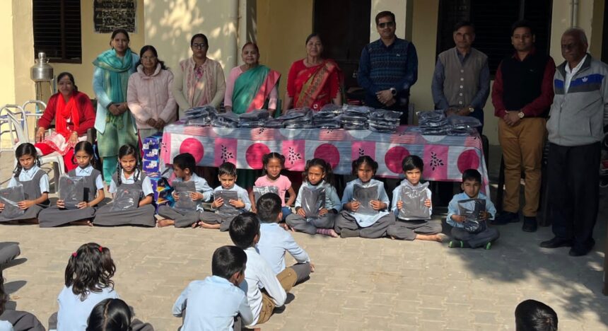 गुलाबपुरा (रामकिशन वैष्णव) महात्मा गांधी राजकीय विद्यालय जूना गुलाबपुरा में भारत विकास परिषद के भामाशाह सदस्य लवकुमार माहेश्वरी द्वारा कक्षा 1 से 5 के सभी विद्यार्थियों को स्वेटर प्रदान किऐ, इसी तरह विद्यालय की भामाशाह श्रीमती शांता तोषनीवाल द्वारा भी 18 जोड़ी जूते वितरित किए गए। इस अवसर पर परिषद सदस्य विनोद कुमार त्रिपाठी, लोकेश योगी, सुनीता पंचारिया, मीना भाटिया, लीला गग्गड़, मधु कलवार, मुत्री जागोठिया स्टाफ सदस्य पुष्पा जोशी, प्रह्लाद तेली, सुरेश मुनोत, सुशील चौधरी, लीना चौधरी आदि मौजूद थे। विद्यालय के संस्था प्रधान परमानन्द शर्मा द्वारा आगंतुक अतिथियों का स्वागत सम्मान और आभार व्यक्त किया गया। सुनीता पंचारिया ने बताया कि अल्प निवेदन पर दोनों भामाशाहों ने बच्चों के लिए स्वेटर और जूते वितरित किए। भामाशाह लव कुमार माहेश्वरी ने कहा की जब भी किसी भी प्रकार के कार्य या सेवा की आवश्यकता हो बतावे।