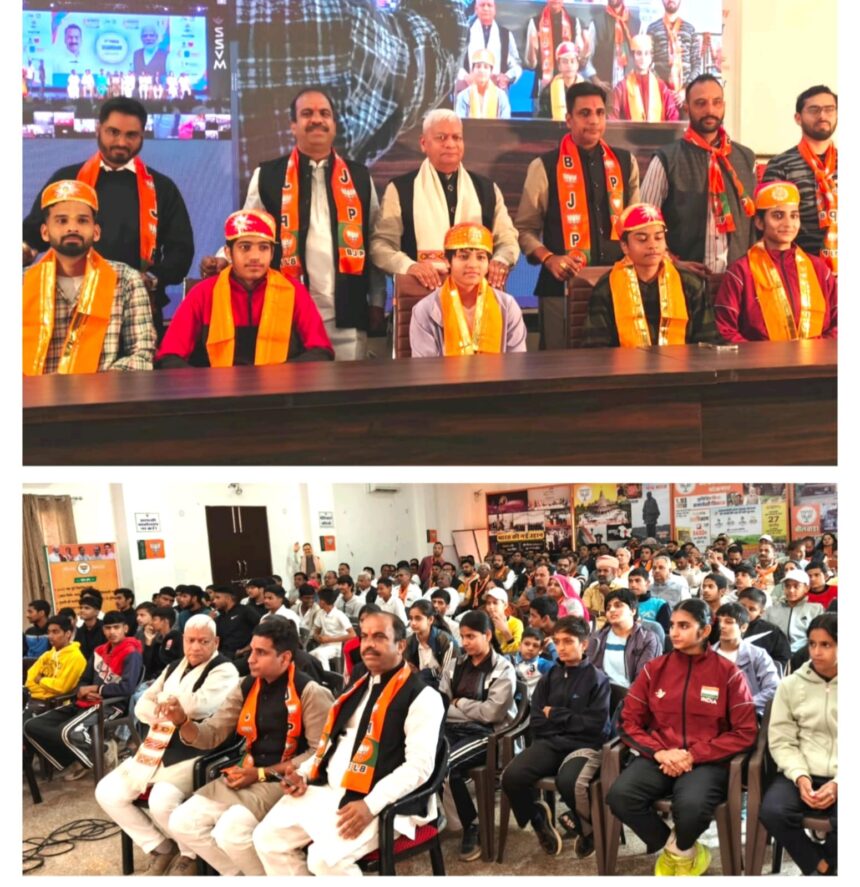 भाजपा जिला मीडिया संयोजक महावीर समदानी ने जानकारी देते हुए बताया कि भारत रत्न पूर्व प्रधानमंत्री श्रधेय अटल बिहारी वाजपेई जी की “जन्म शताब्दी” ‘अटल स्मृति वर्ष’ के उपलक्ष में आयोजित कार्यक्रम में सांसद दामोदर अग्रवाल के मुख्य आतिथ्य , भाजपा जिलाध्यक्ष प्रशान्त मेवाड़ा की अध्यक्षता में , सांसद खेल महोत्सव के समापन अवसर पर , देवांश प्रधानमंत्री नरेन्द्र मोदी द्वारा लाइव वर्चुअल सम्बोधन कार्यक्रम आज गुरुवार प्रात:भीलवाड़ा भाजपा जिला कार्यालय पर बड़ी स्क्रीन पर लाइव वर्चुअल देखकर किया
