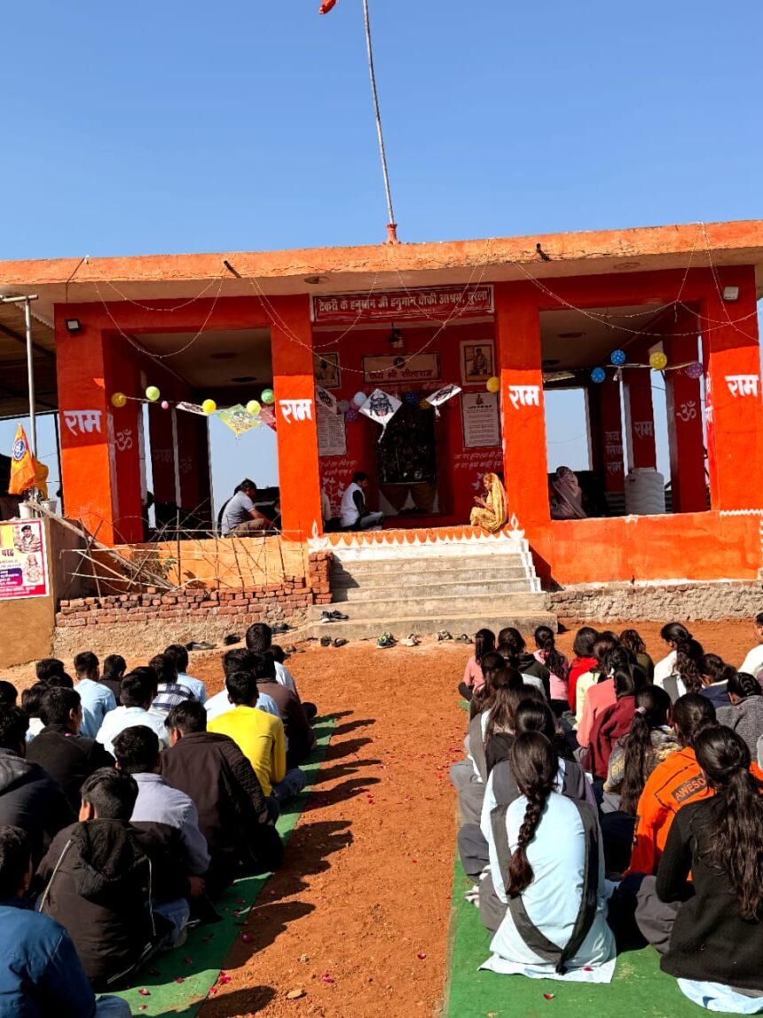 गुरला (भीलवाड़ा)। मकर संक्रांति के पावन पर्व पर आज टेकरी के हनुमान जी, हनुमान चौकी आश्रम में भक्ति और सेवा का अनूठा संगम देखने को मिला। आश्रम के महंत श्री पुनीत दास त्यागी जी के सानिध्य में आयोजित इस भव्य कार्यक्रम में क्षेत्र के विभिन्न विद्यालयों के लगभग 500 छात्र-छात्राओं ने शिरकत की।