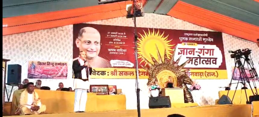 डूंगरपुर जिले के सागवाड़ा नगर में आज एक ऐतिहासिक दृश्य देखने को मिला। राष्ट्रसंत आचार्य श्री पुलक सागरजी महाराज के पावन सानिध्य में ‘ज्ञान-गंगा महोत्सव’ के अंतर्गत ऋषभ वाटिका में ‘विराट हिंदू सम्मेलन’ का भव्य आयोजन किया गया। इस सम्मेलन में सागवाड़ा नगर की दसों बस्तियों के सकल हिंदू समाज ने सामूहिक रूप से अपनी उपस्थिति दर्ज कराई।