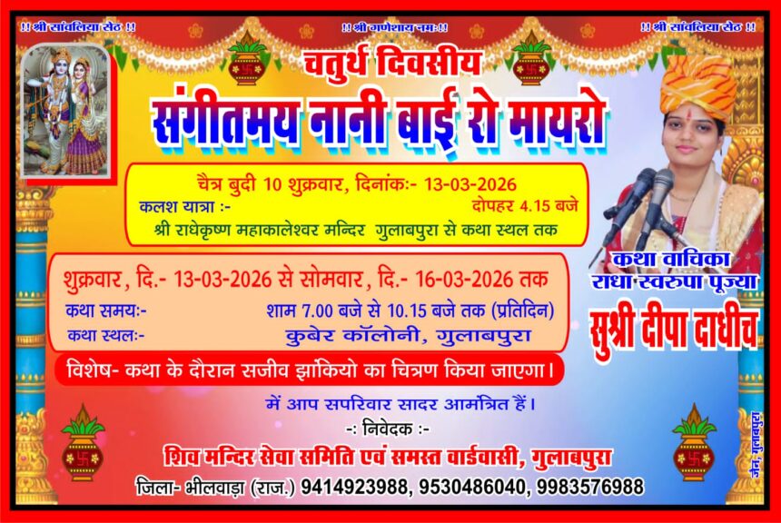 चार दिवसीय संगीतमय ‘नानी बाई रो मायरो’ कथा 13 मार्च से