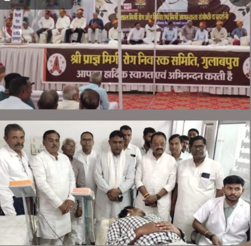 गुलाबपुरा (रामकिशन वैष्णव ) स्थानीय श्री प्राज्ञ मिर्गी रोग निवारक समिति के स्थापना दिवस के अवसर पर आयोजित विशाल मिर्गी रोग जांच शिविर मिर्गी जागरूकता संगोष्ठी व प्रदर्शनी का संस्था प्रांगण मे आयोजित समारोह में अति विशिष्ठ अतिथि विधायक जब्बर सिंह सांखला, समारोह गौरव राजेन्द्र लोढ़ा,समारोह अध्यक्ष मूलचंद नाबेड़ा, मुख्य अतिथि दिलीप मेहता,मुख्य वक्ता महावीर चौधरी, विशिष्ठ वक्ता डॉक्टर आर के सुरेखा,स्वागताध्यक्ष रणजीत सिंह कुमठ द्वारा उदघाट्न किया गया।