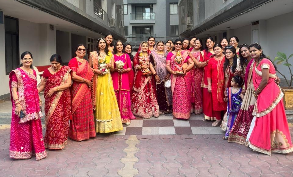 सुबह से ही सोसायटी परिसर में उत्सवी माहौल बन गया था। पारंपरिक परिधानों में सजी महिलाओं ने इसर जी और गणगौर माता की आकर्षक सवारी निकाली। ढोल-बाजों की थाप और “गोर गवर गोमती…” जैसे पारंपरिक राजस्थानी लोकगीतों की मधुर गूंज से वातावरण भक्तिमय और उल्लासपूर्ण हो उठा। महिलाओं ने सामूहिक नृत्य और गीतों के माध्यम से अपनी आस्था और परंपरा का सुंदर प्रदर्शन किया।