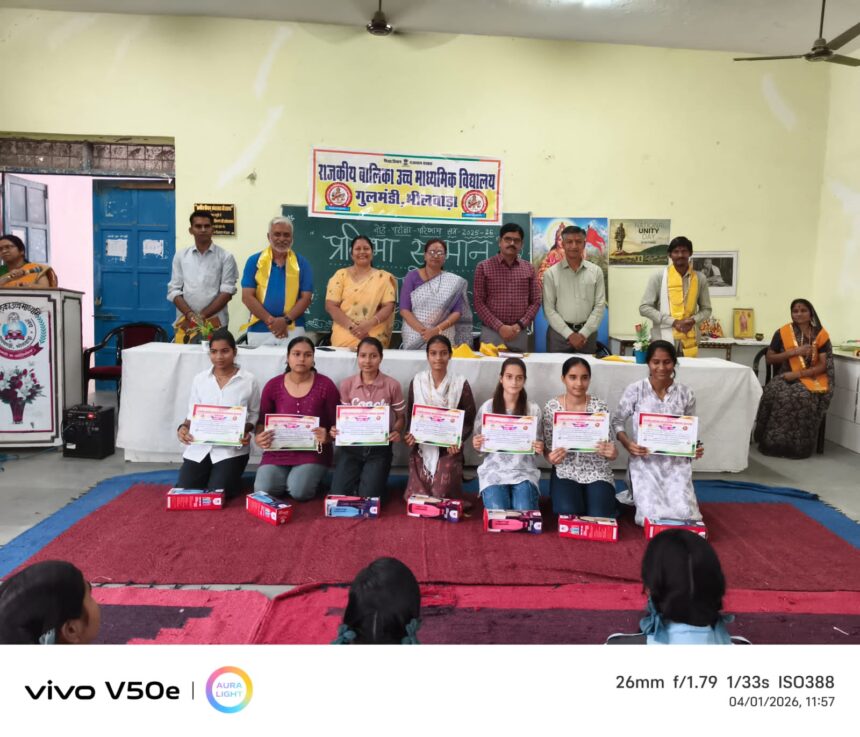 भीलवाड़ा | राजकीय बालिका उच्च माध्यमिक विद्यालय, गुलमंडी (भीलवाड़ा) की छात्राओं ने राजस्थान माध्यमिक शिक्षा बोर्ड की 12वीं परीक्षा में सफलता की नई इबारत लिखी है। विद्यालय की होनहार छात्रा अनु तेली ने विज्ञान वर्ग में 98% अंक प्राप्त कर पूरे भीलवाड़ा जिले को टॉप किया है।