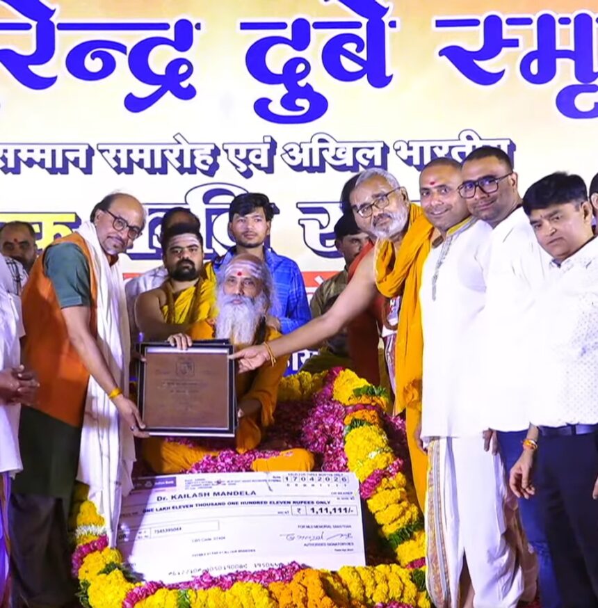 अजमेर जिले की ख्याति को विश्व पटल पर स्थापित करने वाले कवि सुरेंद्र दुबे की स्मृति में इस वर्ष का ‘सुरेंद्र दुबे स्मृति सम्मान-2026’ शाहपुरा (भीलवाड़ा) के अंतरराष्ट्रीय स्तर पर प्रतिष्ठित जनकवि और साहित्य अकादमी पुरस्कृत साहित्यकार डॉ. कैलाश मण्डेला को प्रदान किया गया। उन्हें सम्मान स्वरूप 1,11,111 रुपये की राशि, ताम्र पत्र एवं प्रतीक चिन्ह भेंट किया गया। संस्थान के अध्यक्ष चंद्र प्रकाश दुबे व संतों ने उनके साहित्यिक अवदान को रेखांकित किया।