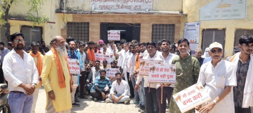 गुलाबपुरा (रामकिशन वैष्णव ) स्थानीय साधु संतो व गौभक्तो ने गौमाता के समर्थन मे शहर मे रैली निकाल कर उपखण्ड कार्यालय मे ज्ञापन सौंपा। गौ सम्मान आह्वान अभियान के निमित्त उपखंड क्षैत्र के गोभक्तों द्वारा राष्ट्रपति, प्रधानमंत्री के नाम गौ सम्मान आह्वान अभियान का प्रार्थना पत्र सौंपा गया। ज्ञापन से पूर्व साधु संतों व गोभक्तों ने गौमाता के समर्थन रैली निकाली। रैली सार्वजनिक धर्मशाला से शुरू हुई जो शहर के विभिन्न मार्गो से होते हुए एसडीएम कार्यालय परिसर पहुंची, जहां एसडीएम को संत उमेश दास व लवकुश दास के नेतृत्व में प्रार्थना पत्र सौंपा गया । ज्ञापन मे बताया की गौ माता के संरक्षण, गौ हत्या पर रोक लगाने व गौ पालकों के सम्मान की मांग को लेकर राष्ट्रपति, प्रधानमंत्री, राज्यपाल और मुख्यमंत्री के नाम प्रार्थना पत्र सौंपा गया। इस दौरान कई गौभक्त मौजूद थे।