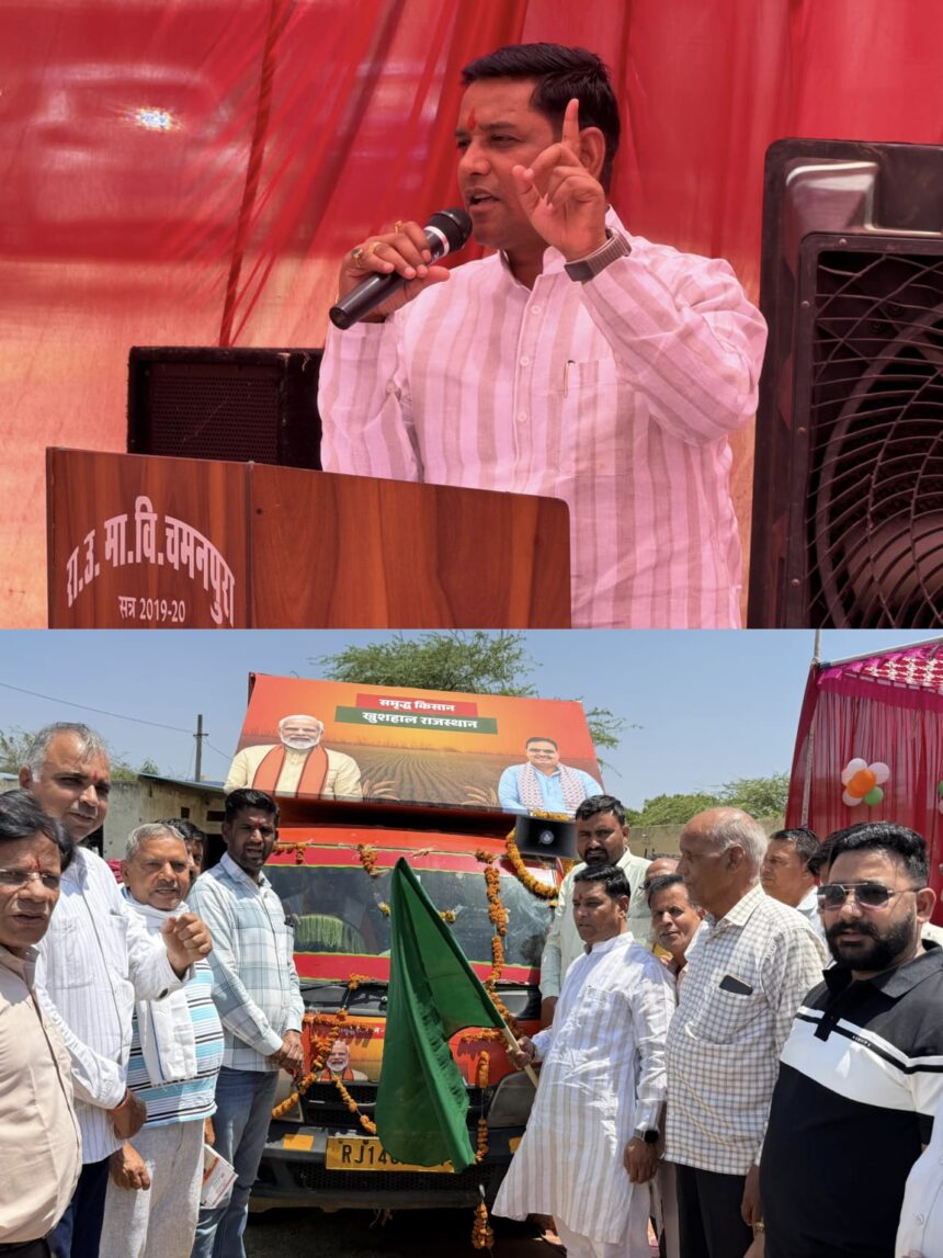 शाहपुरा | राजस्थान की भजनलाल सरकार की जनकल्याणकारी योजनाओं को जन-जन तक पहुँचाने के लिए प्रदेशव्यापी “एलईडी मोबाइल वैन ग्राम रथ अभियान” का आगाज हो चुका है। इसी कड़ी में आज शाहपुरा विधानसभा क्षेत्र के चमनपुरा ग्राम से क्षेत्रीय विधायक डॉ. लालाराम बैरवा ने ‘विकास रथ’ को हरी झंडी दिखाकर रवाना किया।